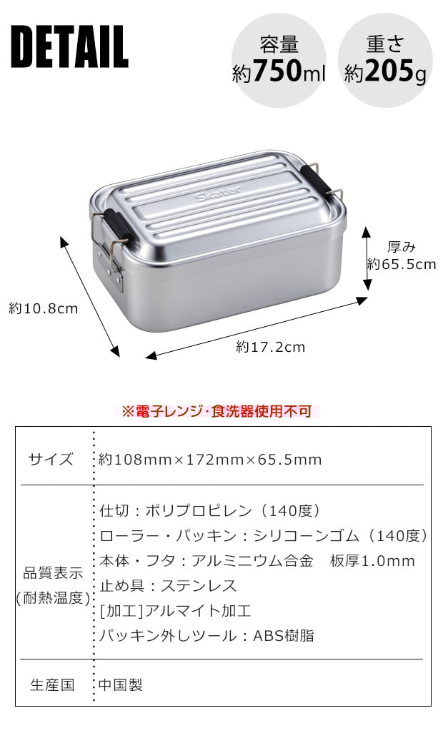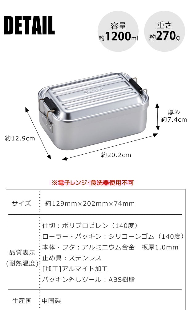 🔥 限時特價中 🔥 👍🏻產品特點👍🏻 🌀一種由鋁製成的深型輕便耐用的緊密午餐盒。 🌀由導熱性優異的鋁製成,可快速冷卻熱米飯和配菜。 🌀配有高隔板,防止配菜混合。 📏尺寸📏 🌀容量750ml: 約172 x 108 x 66mm 🌀容量1000ml: 約192×122×69mm 🌀容量1200ml: 約202 x 129 x 74mm 👀主素材👀 🌀本體/蓋子/鋁合金 板厚 1.0mm(陽極氧化)不銹鋼烯、 🌀隔板/聚丙烯 ❗不適用於微波爐、洗碗碟機 🎨3個尺寸可供選擇🎨 750ml / 1000ml / 1200ml [只限銀色經典款,紅色藍色款圖片僅供參考] ⭐⭐⭐⭐⭐⭐⭐⭐⭐⭐⭐⭐⭐⭐⭐ 本店為✅正版正貨✅承諾會員商店,絕不出售🚫淘寶、偽貨🚫,客人可安心選購😊😊 ⭕ 此貨品為【訂購】貨品, 約10-18個工作天到貨。 ⭕ 訂購條款請參閱 :【購物須知】➡️ 【退貨及退款政策】 ⭐⭐⭐⭐⭐⭐⭐⭐⭐⭐⭐⭐⭐⭐⭐