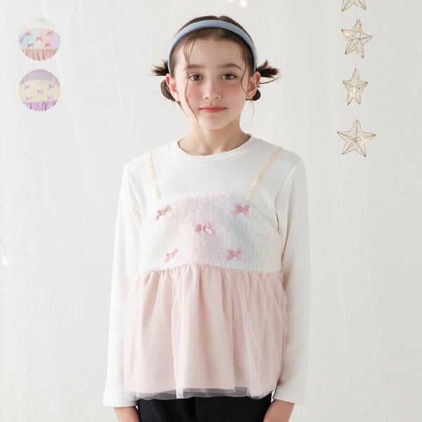🆕【⭐訂購⭐】日本直送 🇯🇵 🌀緞帶毛毛裝飾 喇叭形薄紗下擺 抓絨衛衣[2款選]🌀[EKLA-0155][260121]