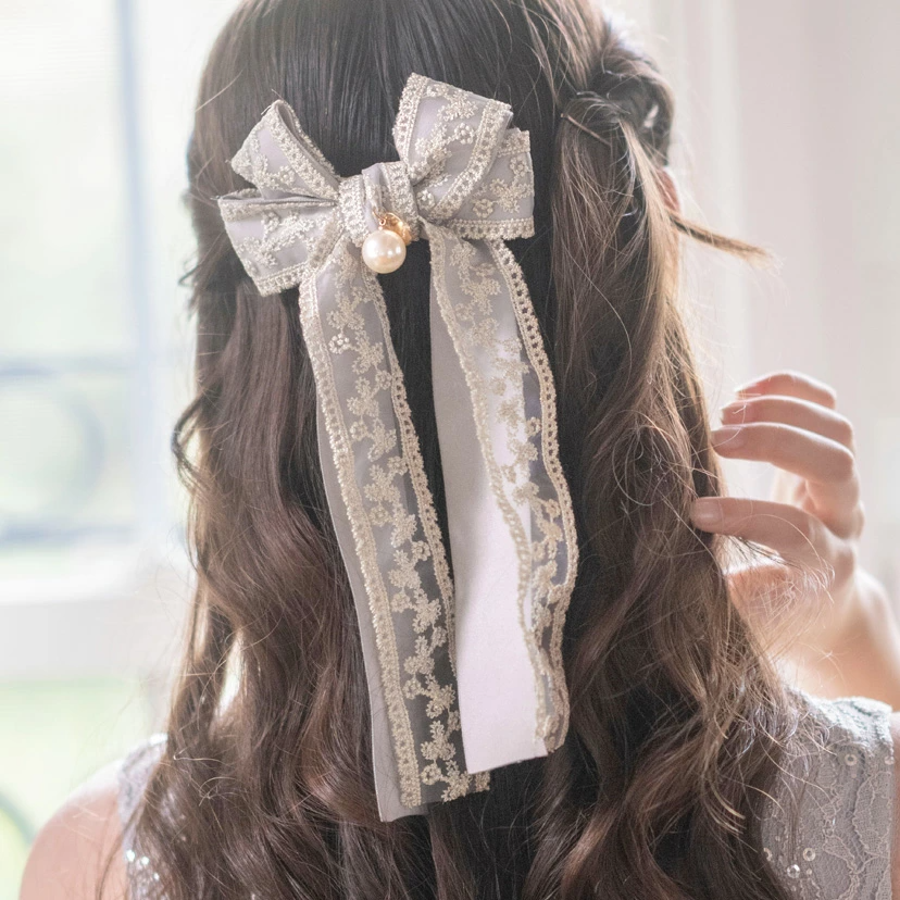 🆕【⭐訂購⭐】 🇯🇵日本直送🌀珍珠吊墜 蕾絲刺繡絲帶 公主髮夾[5款選]🌀 [ELAA-0070][260122]