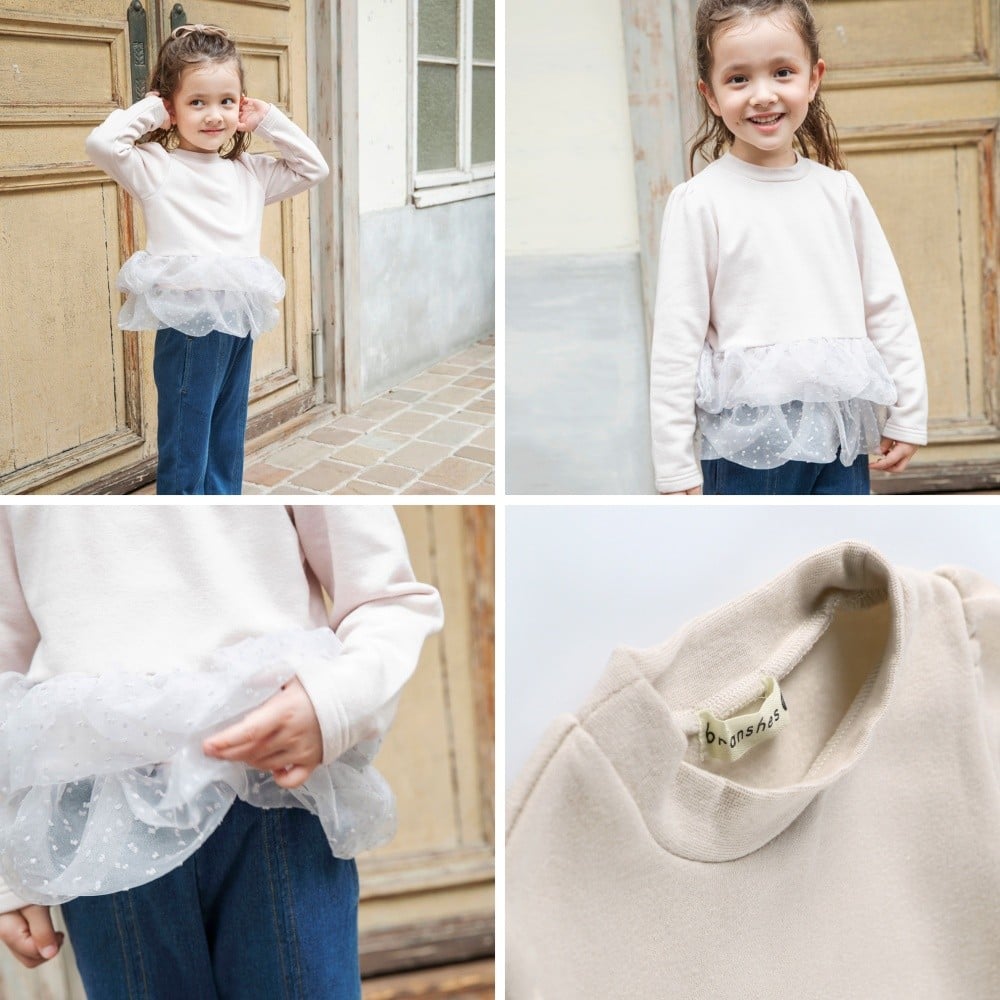 🆕【⭐訂購⭐】 🇯🇵日本直送 🌀女童 荷葉邊 波點薄紗下擺 抓絨衛衣[2款選] 🌀[EKKA-0116][251129]